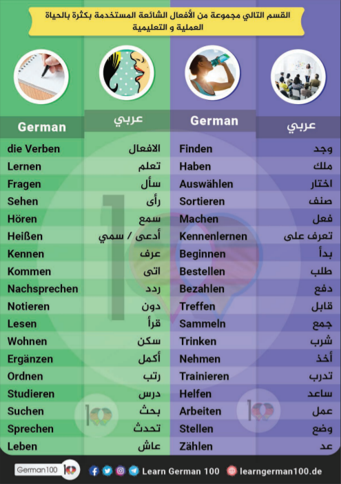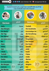 تعتبر هذه القائمة من اساسيات تعلم اللغة الالمانية من اجل اتقانها والتكلم بها او القدرة على استيعاب ما يقال امامك وهي عبارة عن 1000 كلمات المانية ومعناها بالعربي pdf مستخدمة في الحياة اليومية في المدرسة والعمل والتسوق ومراكز الدولة الحكومية والمشافي.